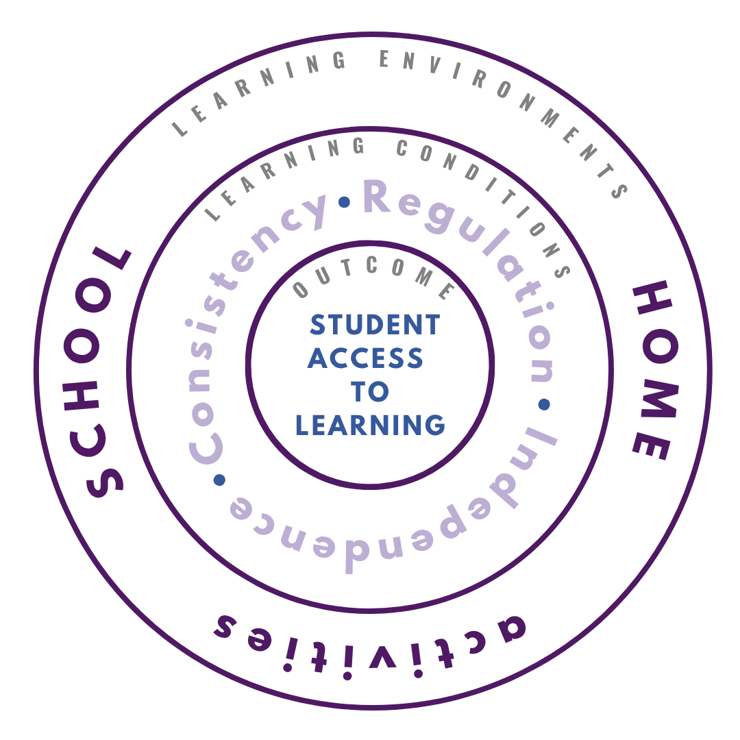 The model shows the learning conditions schools depend on for students to access learning across environments.